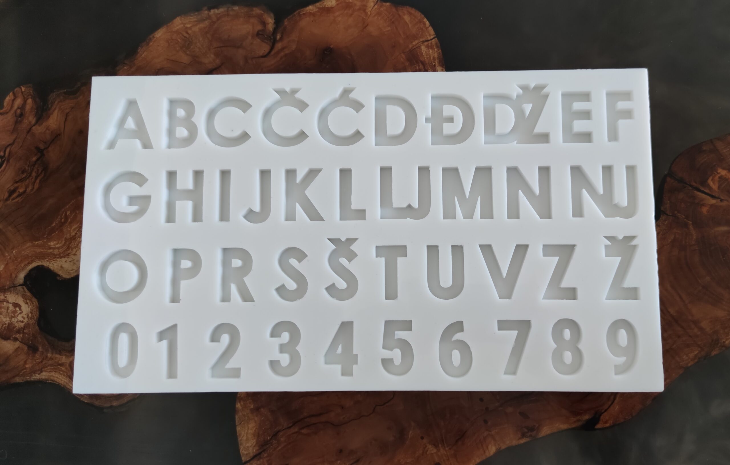 Silikonski kalup slova i brojke s Hrvatskim znakovima 41x23x1,3 cm od Platinum silikona, težina 1,5 kg – izrada po narudžbi